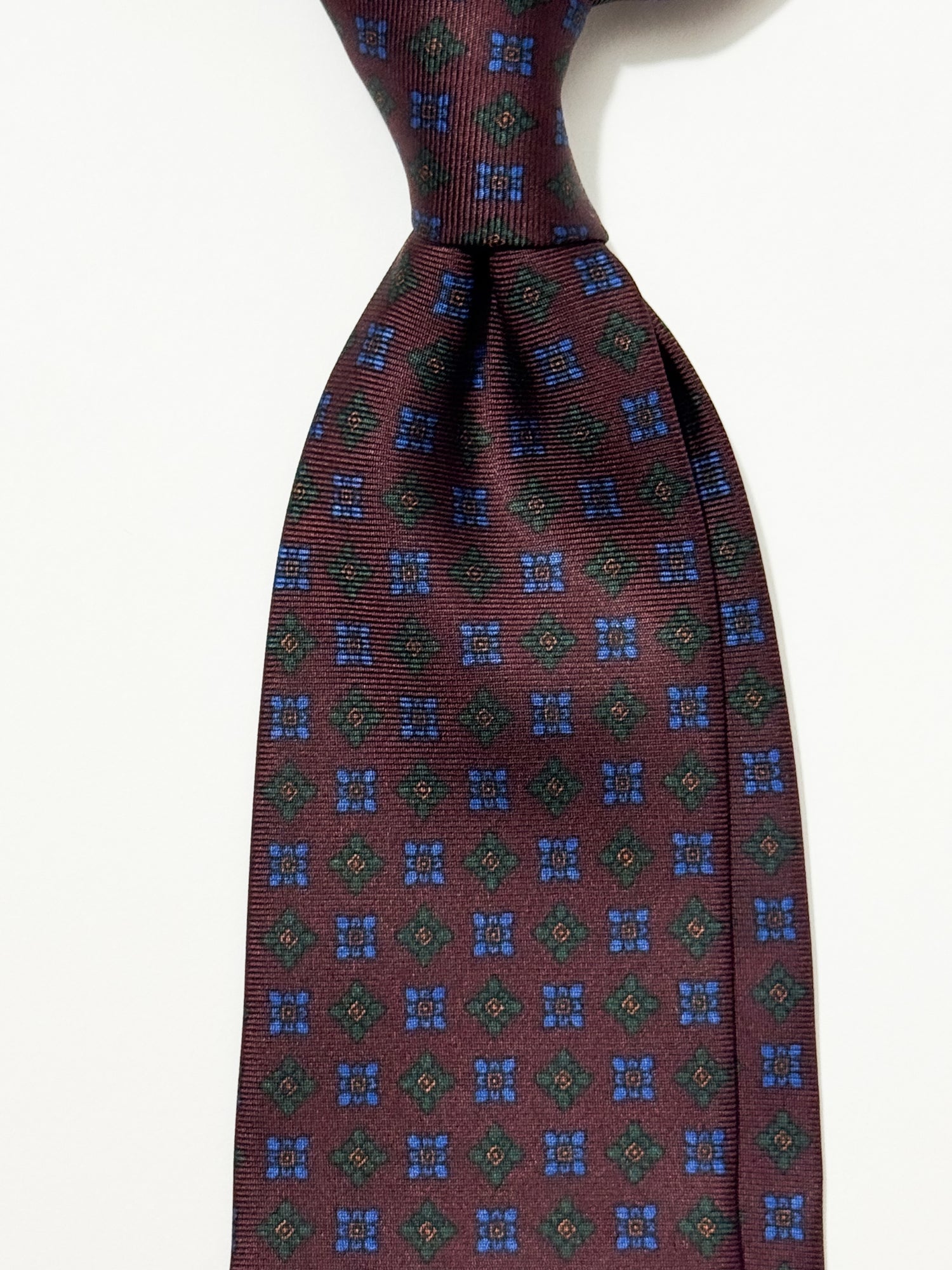 Corbata de Seda Ancient Madder Burdeos Oscuro con Diamantes y Flores