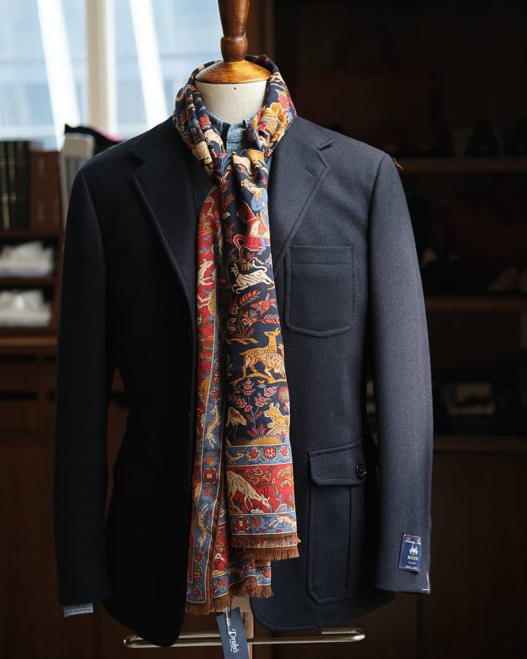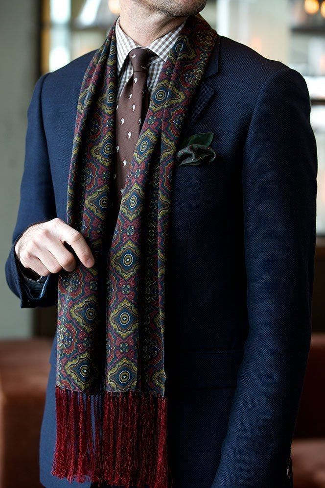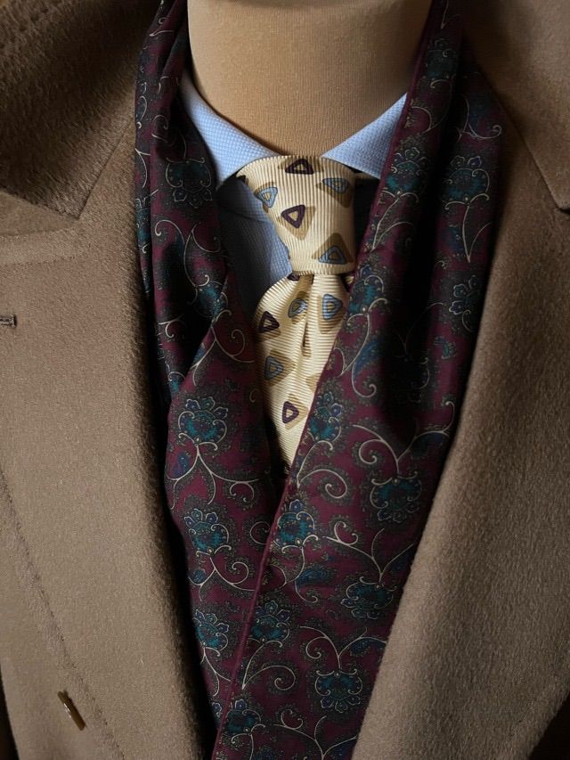 Pañuelo de Seda Ancient Madder Reversible Burdeos y Azul en Paisley y Estampado Geométrico